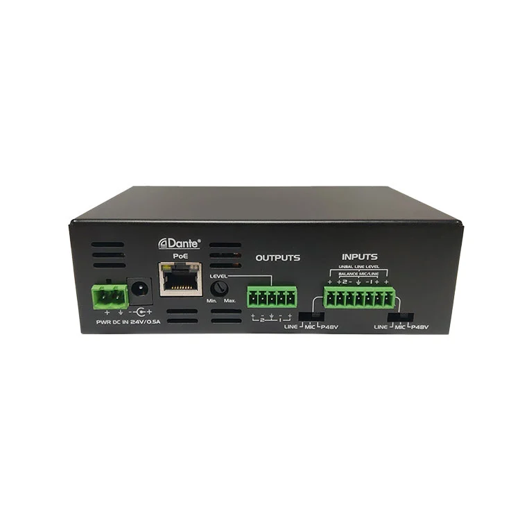 1. Овози зинда ва пахши аҳолӣ - ба осонӣ муттаҳид кардани микрофонҳо ё манбаъҳои сатҳи сатҳҳо ба шабакаи Dante барои омезиши зинда, ҷараён ё сабт.