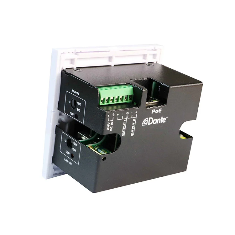 Панели Данси Интерфейси Дантере, ки ду шабакаҳои шабакаи Данчро ба натиҷаҳои аналогио табдил медиҳад ва ду маводи аудиои антио ба сигналҳои Данна табдил медиҳад. Дар ду версия-dwp222L-MOTION-МО НИГОҲ ДОРАД (МО МУНАМИ МО МУНАЛАТ) ва DWP22L-EACESS дастрас аст. - барои барои қуттиҳои бозгаштҳои аврупоӣ пешбинӣ шудааст. Танҳо тавассути Cath5 сими ба даст овардани варақаи Ethernet пайваст шавед ва нозирро истифода баред, то сигналҳои пастсифатро дар шабака масоил истифода баранд.